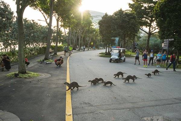 水獭家族一家大小在滨海湾花园溜跶,吸引不少游人围观和拍照。(取自网络)