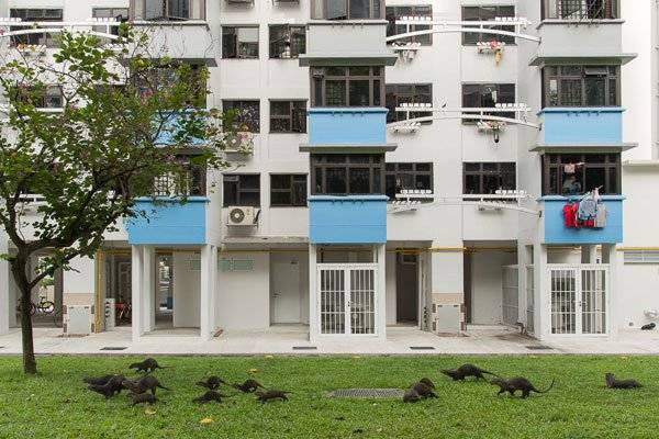 这些照片主要是以碧山水獭家族的生活面貌为题材,捕捉到这些可爱小动物在组屋区、滨海湾一带留下的倩影。