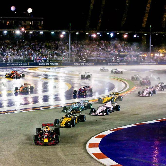 赛车手在308公里的滨海湾街道赛道上全力以赴。