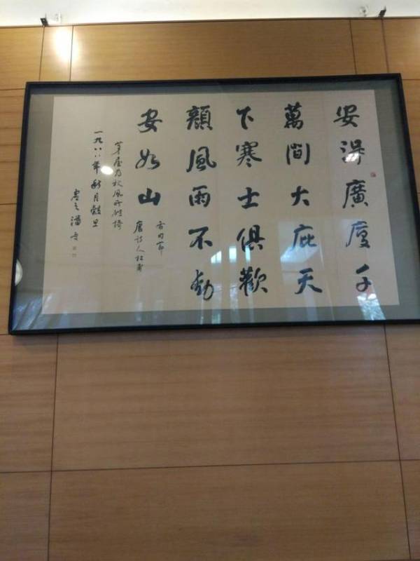 当年为了房子焦虑到经常睡不着,在国内面临压榨双亲,背负巨大债务,对未来充满深深的忧虑,一度想过不再拖累相恋七年的女友。而后来到千里之外,终于有了一个家。站在这幅巨型牌匾下,看着这句熟悉的诗句,小时候学只是背诵考试,毫无感觉。二十年过去,联想到我自己的遭遇,我这个“寒士”的心情是多么的复杂………(我在哪?我应该在哪?从小学的社会主义的优越性在哪?)有人说看到这张图泪目了,其实当时我也泪目了,中国诗词无数首,他们怎么知道就选这一句的?泉下有知的老杜,您老要是知道了会不会也泪目?