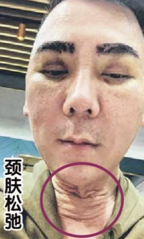 李荣达的颈部皮肤在手术后严重松弛,看起来像六七十岁的老人。李荣达曾经减肥瘦了20多公斤,有人觉得是他减肥导致的皮肤松弛。