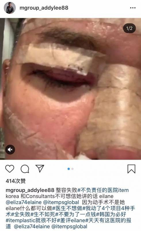 他自称,自己远赴韩国整容,可是韩国整形医院的整形顾问非常不负责任,自己做的4个整形项目全部失败,害他“生不如死”。
