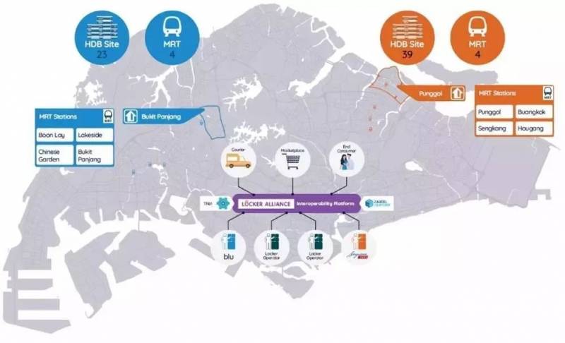 新加坡建立储物柜联盟,即可以由各种递送公司访问的包裹储物柜的网络。包裹被更有效地传送到靠近家庭和MRT站点的集成点,方便消费者可以方便获取。