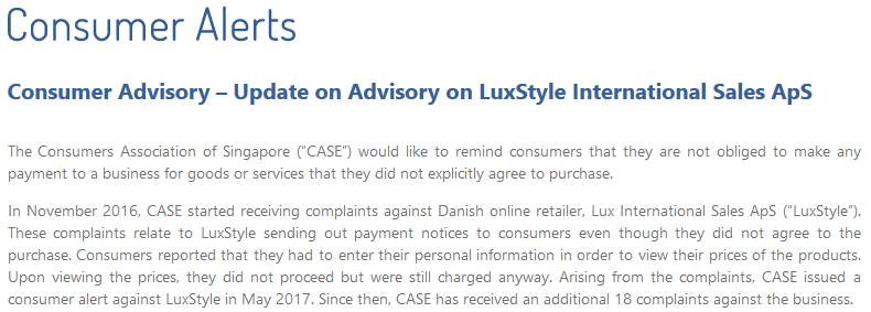 消费者投诉,即使他们没有购买产品,却收到LuxStyle的付款通知。他们被要求输入个人资料,才能查看产品的价格。查看后他们没有购买,却仍然得为产品买单。