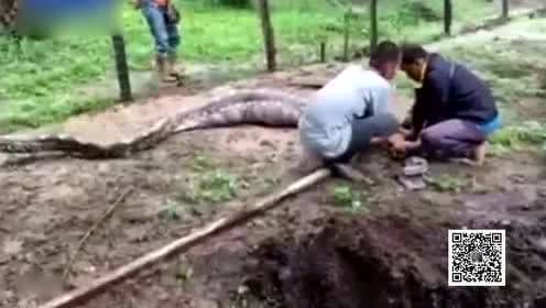 马来西亚巨蟒鲸吞两只山羊 太胖动弹不得被抓