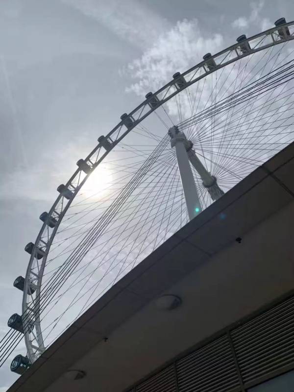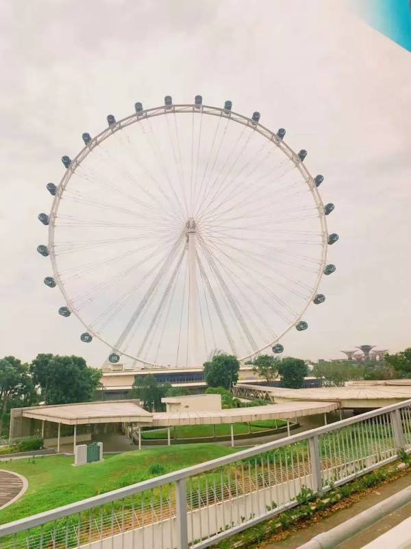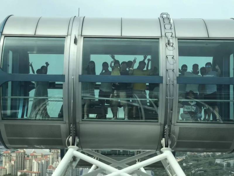 中午,大家品尝了当地特色松发肉骨茶之后,开始游玩世界最高的飞行者摩天轮。摩天轮坐落在滨海中心填海的土地上,坐在摩天轮上可以饱览新加坡市中心的景色,金沙酒店、新加坡金融中心一览无余。