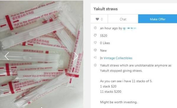一名网民把自己手上有的11包吸管(每包五支)拿出来拍卖,指“可能值得投资”,并叫有兴趣的网民开价。另一名标价1元的卖家则认为绝版吸管已成为怀旧品,也叫网民报价。
