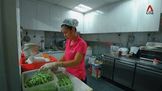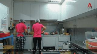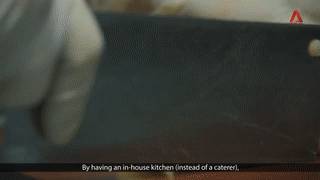 厨房里的阿姨们很专业,全程戴着手套和帽子。