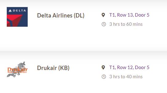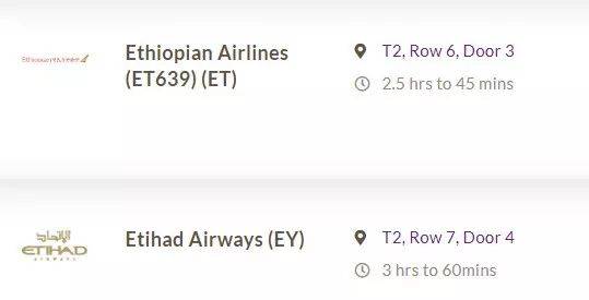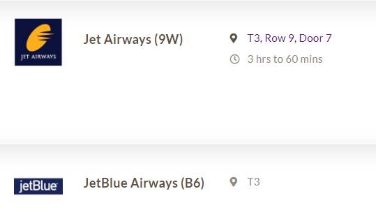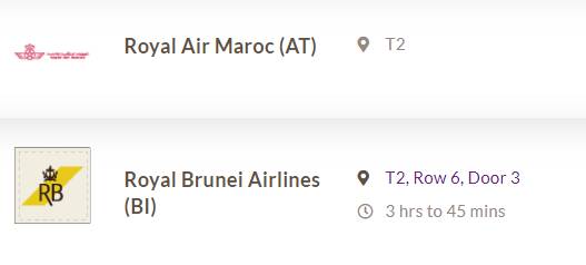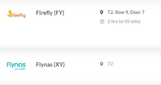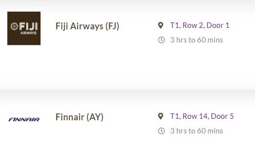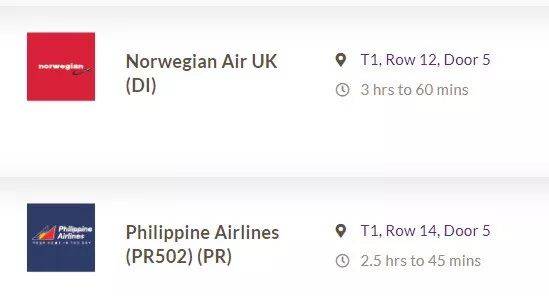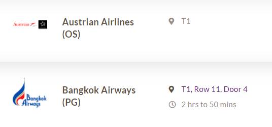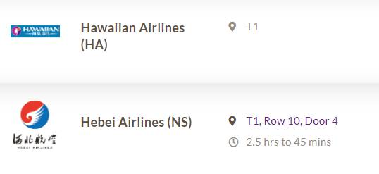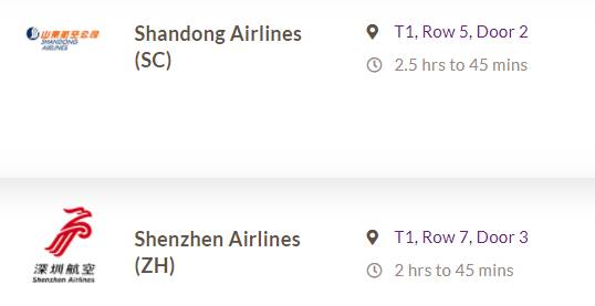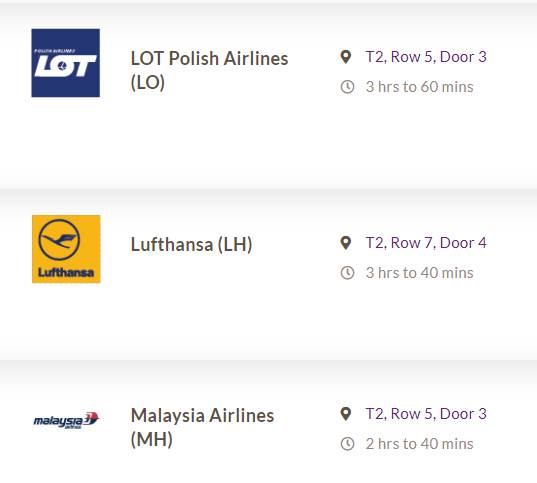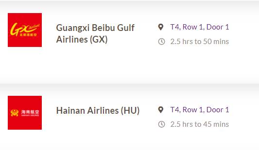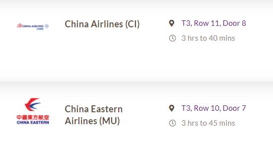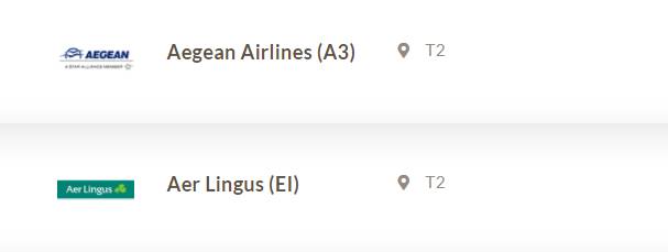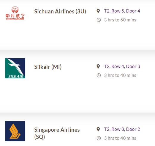 注:每间航空公司的航班都固定在一个航站楼,除了新航,在T2和T3都有航班。