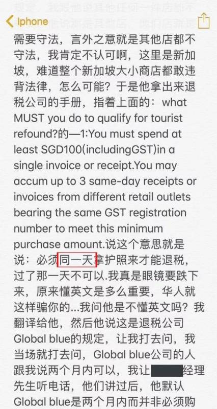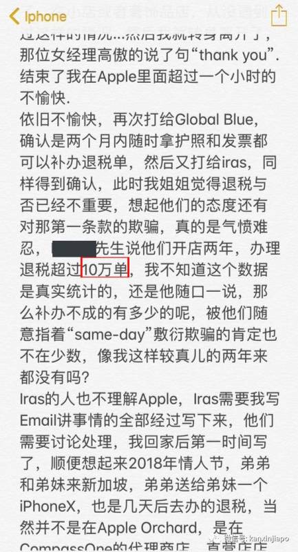 然而网友向退税公司和新加坡税务局(IRAS)分别打完电话得到的答复都是,购物两个月内是可以退税的。这让网友对那位苹果店经理感到非常生气。