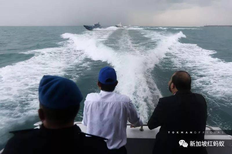 柔州大臣鄂图曼沙比安登上侵入新加坡领海的马国浮标船巡视具争议性的海域。(鄂图曼沙比安面簿)