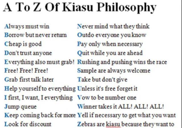 新加坡国立大学的政策学习研究所,资深研究员梁振雄博士将Kiasu解释为是一种生存本能。