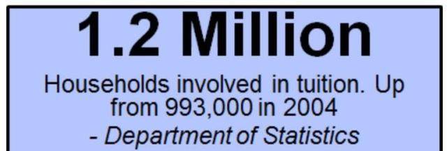 120万家庭的孩子需要去补习中心学习,这个数字占新加坡家庭数量的90%。