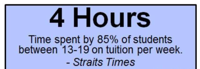 新加坡介于13-19岁的孩子中,85%小孩每周要课外补习4小时以上。