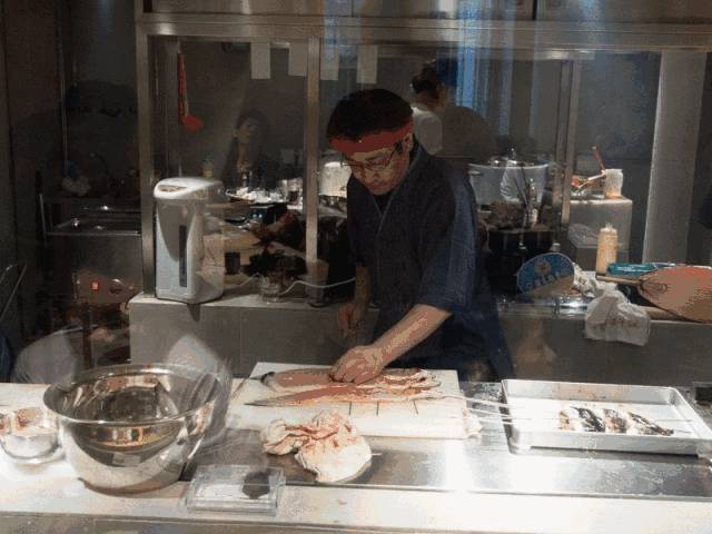你可以直接看到师傅在玻璃挡板后面现杀鳗鱼,然后直接上碳炉现烤。