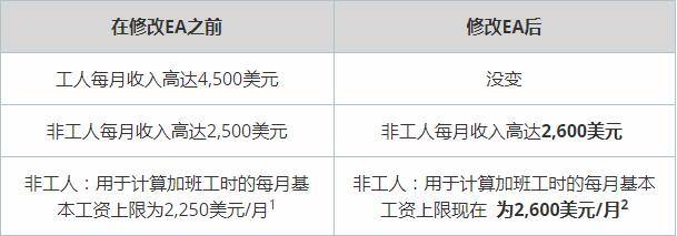 如今,EA的核心条款涵盖所有员工,但不包括月收入超过4,500美元的经理和高管(M&Es)。