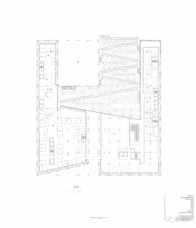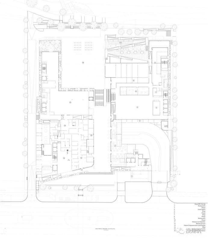 面向水道的大型避风广场体现了社区的核心。这个广场是为一系列社区活动和项目而设计的,是整个场地和相邻火车站的主要交通枢纽。每个可见的地方都覆蓋着茂密的绿植。这些绿植与围绕餐厅和综合医院的阳台空间一起,充当内外部间的环境过滤器。该建筑以轻盈和开放感为特征,允许日光和微风渗透并自然通风。