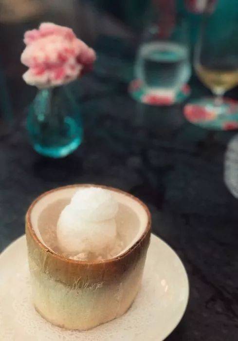 每次来必点的是这个甜品:多重口感的椰子,从冰爽、椰肉、西米到椰汁,仿佛一股清新的风吹过,唤醒这一场春梦,回到现实。