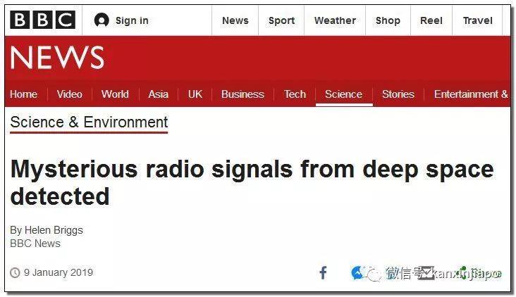 最先爆出这个消息的是BBC,用了“来自外太空深处的神秘电波”的标题,立刻引爆了全球社交平台的热搜榜。