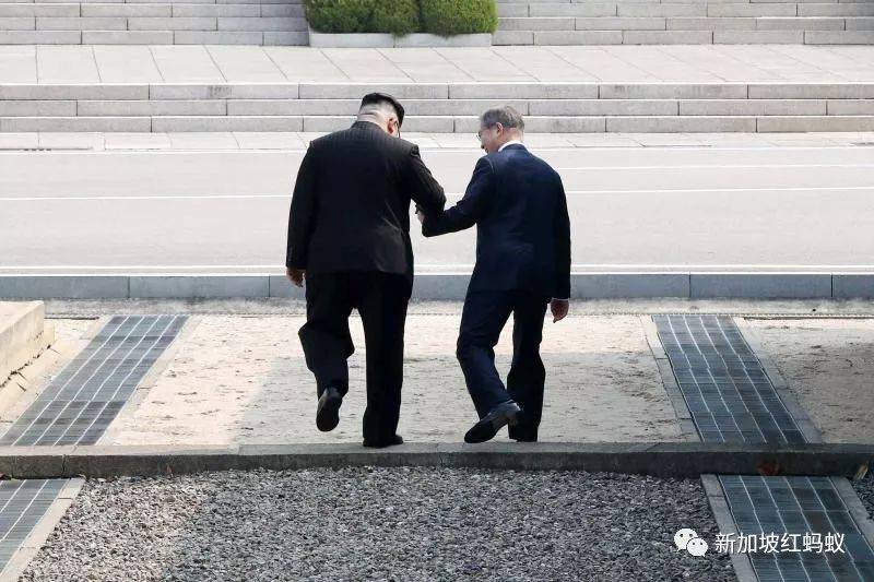 韩朝峰会去年4月27日登场,金正恩抵达板门店韩朝军事分界线,和文在寅握手,两人并携手跨过分界线,成为自1953年韩战结束以来,首次踏足韩国的朝鲜领导人,写下历史新页。(互联网)