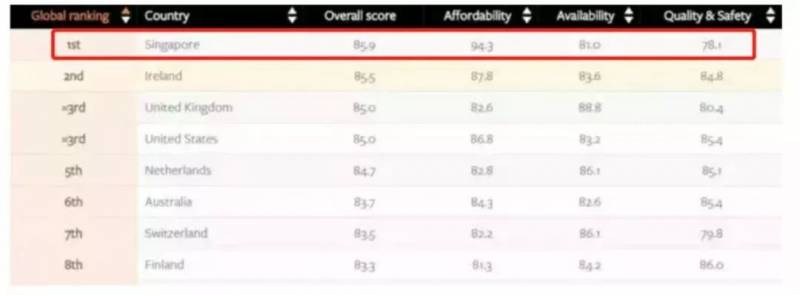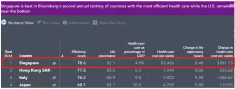 在彭博社发布的世界各国医疗效率排名表中,新加坡的医疗效率更是排到了全球第一!