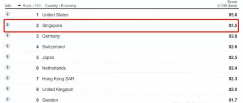 世界经济论坛(WEF)发布年度《全球竞争力报告》,新加坡仅次美国~排名第二。