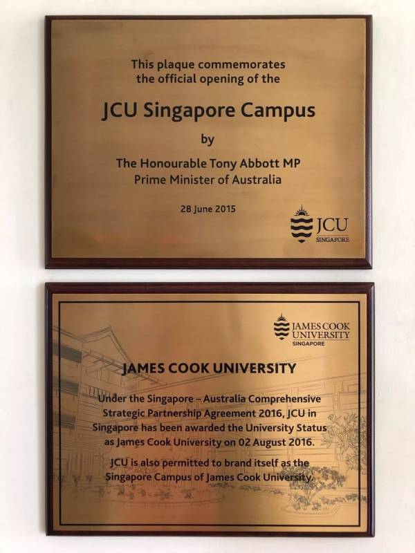 詹姆斯·库克大学新加坡校区(JCU新加坡),成立于2003年,目标是要将JCU在亚洲教育市场上办成一所区域性的大学,保证所开设的课程、颁发的学位证书都与澳大利亚主校区完全相同。