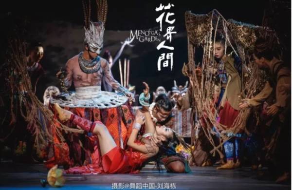 在舞剧《花界人间》的故事中,紫菲和布壮是姆六甲花园里最美丽的两朵花,它们从花界来到人间,引起被囚困在地界的花蜘蛛的强烈的妒忌,生出报复之心。