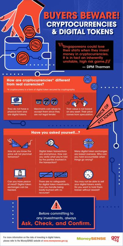 同时,新加坡政府网站上还有专门介绍虚拟货币的部分,让新加坡国人了解其实际情况,并在投资前谨慎考虑。