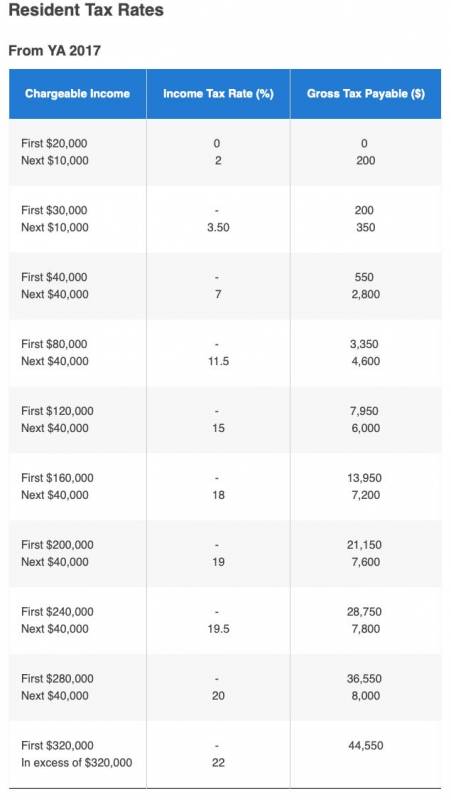新加坡的累进税率从0%开始,年收入S$320,000以上的个人所得税税率为22%