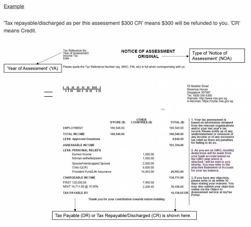 例, “2017年6月3日前缴纳的税款$2,087.14 DR'表示您必须在2017年6月3日之前向新加坡税务局支付2,087.14新币。”DR“是指负债。
