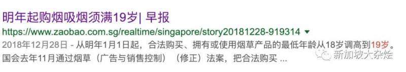 今年1月1号,新加坡实施了新的禁烟法令,把购买、拥有或使用烟草产品的最低年龄从18岁调高到19岁。