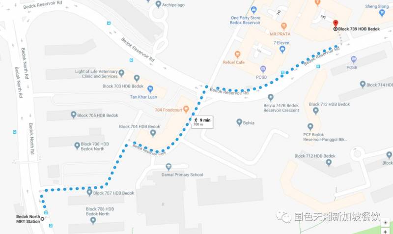 1,乘蓝线Downtown Line在DT29 Bedok North地铁站下车。步行5至10分钟(700米)到达大牌739 Happy Hawker食阁。