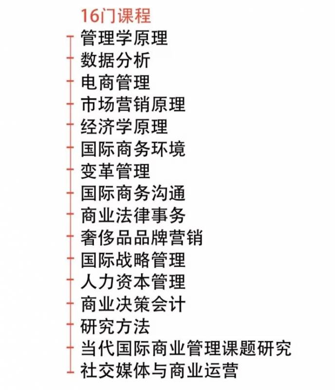 SHRM莎瑞环球工商管理专业的16个月高级大专,涵盖16门专业课。