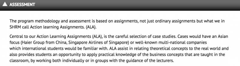 课程抛开了“传统考试”的评估方法,而是采用“行动学习课题”(简称ALA)——评估和检测是基于科目+论文+演讲报告+阶段小测,强调通过应用知识来代替死记硬背的考试。翻译成大白话就是: