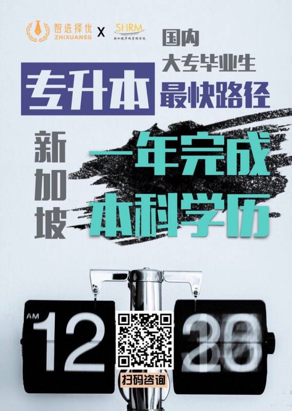 智选君强烈推荐,在国内获得相关专业大专文凭的学生申请这个项目。只需一年就能毕业,是国内大专生在新加坡获得本科学位的最快方式!注意,大专需要读的是相关专业。