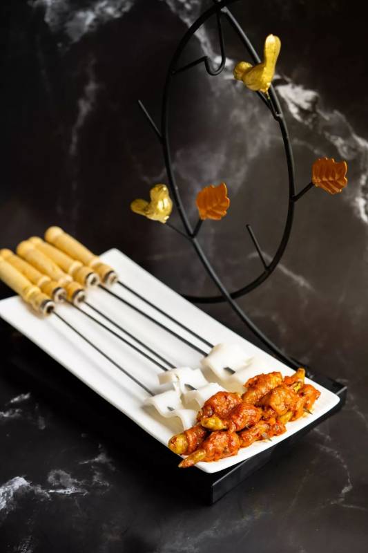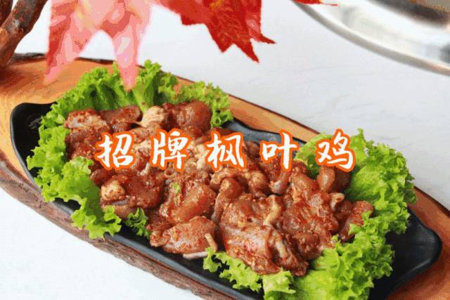 比如枫叶鸡、九门小串串拼盘、红酒牛肉