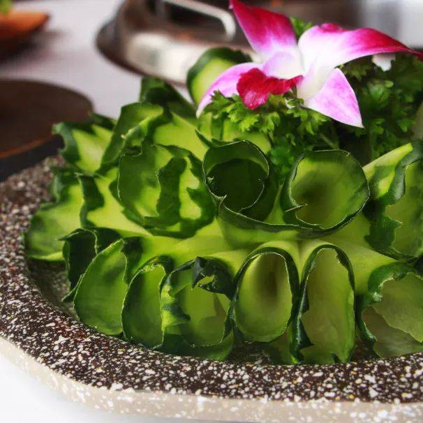 黄瓜涮煮八秒即可食用,脆生生的十分解腻