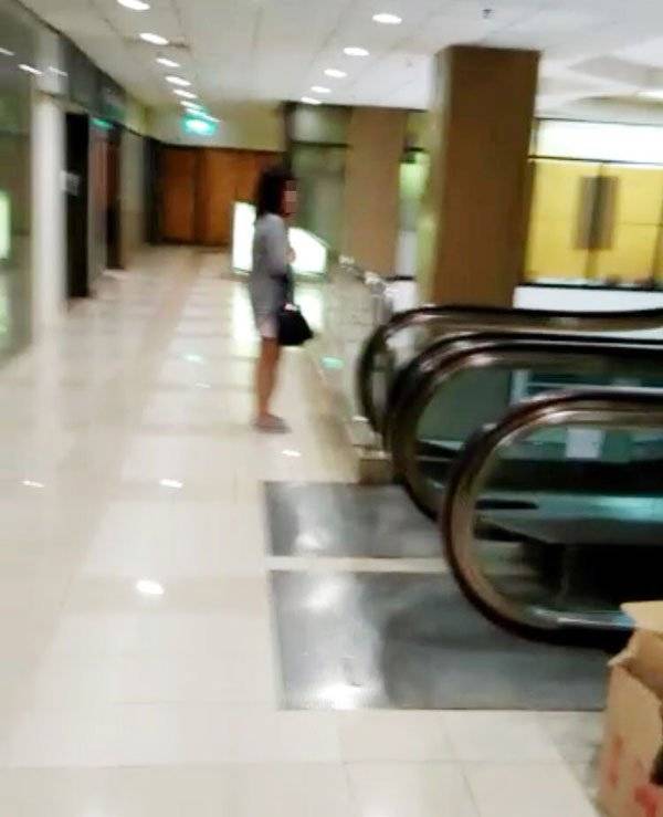 李女士称图中女子就是骗她老公60令吉的按摩女,她的朋友偷拍到对方站在扶梯前准备招客。(读者提供)