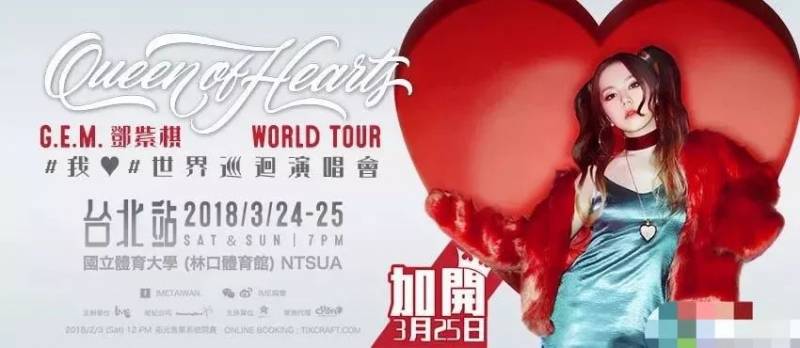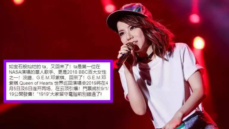 听说亚洲巨肺小天后邓紫棋的《Queen of Hearts 2019世界巡回演唱会》将在今年的4月5日和6日,坡岛隔壁的马国云顶云星剧场连开两场!而门票已于1月9日公开发售!!!