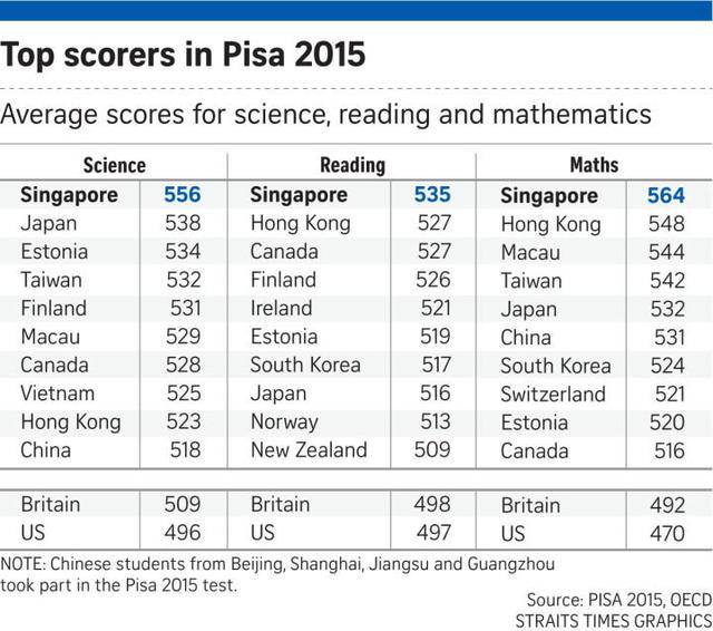 (OECD国家组织的学力评测中,新加坡独占鳌头)
