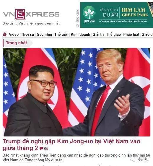 越南最大门户网站——越南快讯网1月13日头条标题称:“特朗普提议2月中旬与金正恩在越南会晤”。