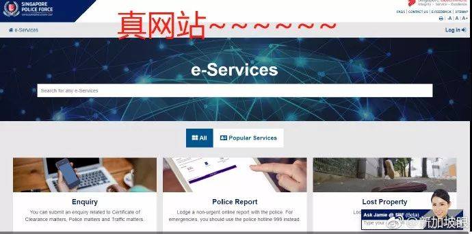 在此郑重提醒大家,新加坡警方部队的网址是www.police.gov.sg。任何其他的网站域名,都!是!假!的!而且,警察部队正规网站的电子服务(e-Services)界面,也和骗子提供的界面不一样,大家千万不要上当。