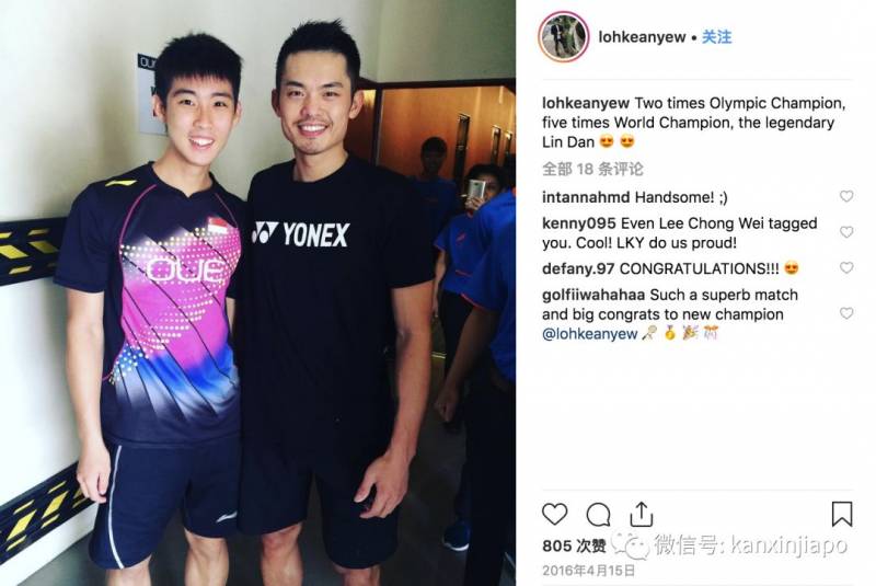 2016年,他还兴奋和林丹合影,称林丹“两次奥运金牌,五次世界冠军,羽坛的传奇”。
