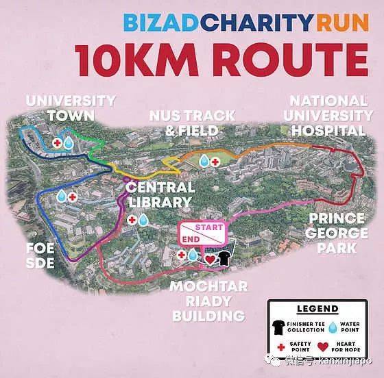 义跑的起点和终点都是商学院的的主楼——李文正楼,来来,围观一下10公里的计时跑程,真的是绕了NUS一大圈啊!