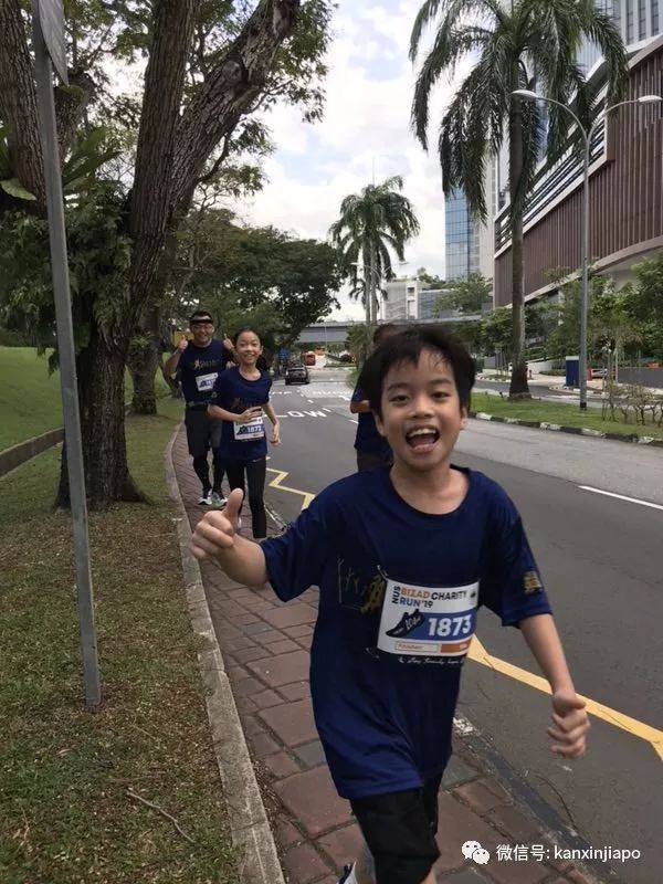 昨天室外温度33度,很热,加上NUS地势坡上坡下,很难跑。大人都受不了,没想到居然有小朋友能坚持跑下来。