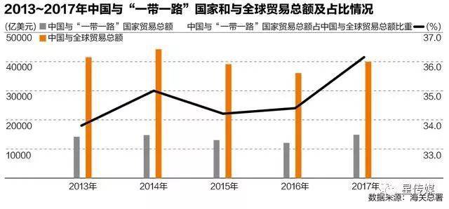 在2017年时,中国与“一带一路”国家的贸易总额同比增长13.4%,高出中国整体外贸增速5.9个百分点。