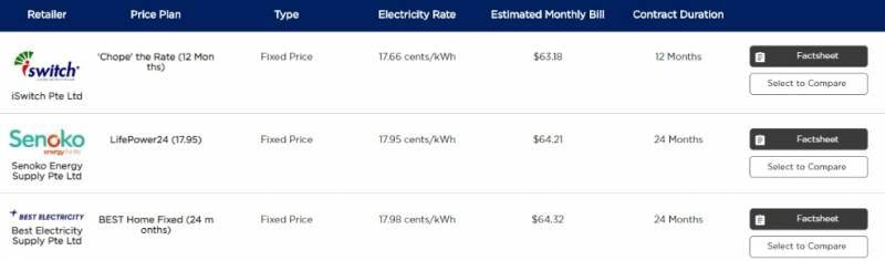 请浏览https://compare.openelectricitymarket.sg/#/home