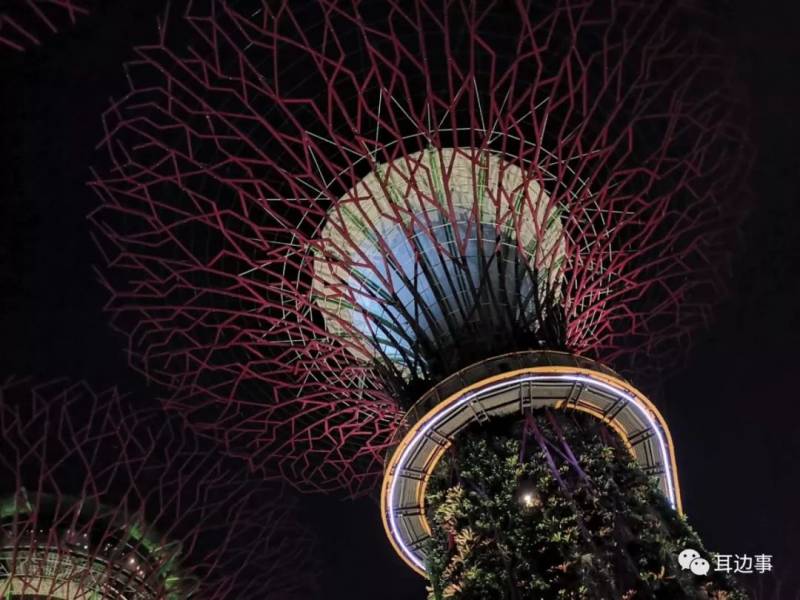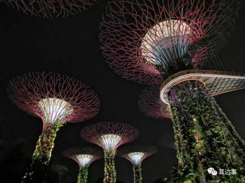 这个热带植物园的建筑仿佛来出自外星人之手,风格奇诡魔幻。白天看来像一棵棵拔地而起的擎天大树,晚上灯光亮起,就变成了来自外太空的秘密基地。每天晚上的灯光秀是滨海湾花园的重头戏,只要来看一次,你就会被这个神奇的地方深深吸引。