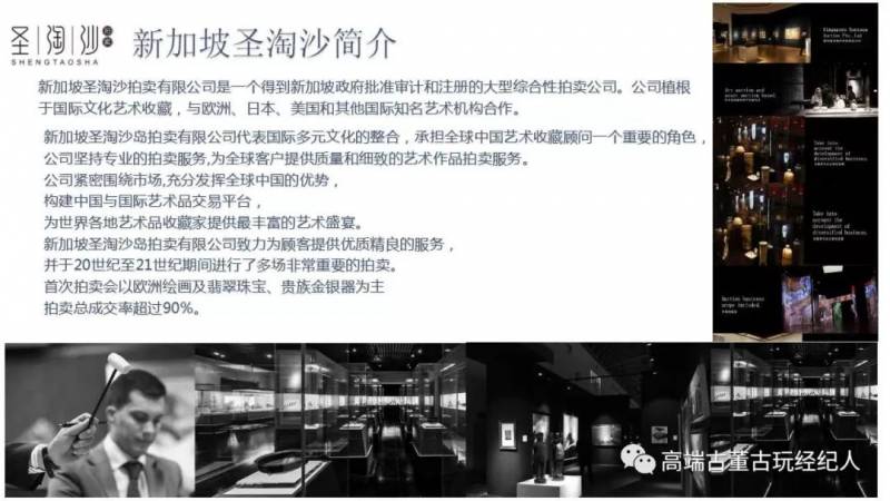 新加坡圣淘沙拍卖有限公司是一个得到新加坡政府批准审计和注册的大型综合性拍卖公司。公司植根于国际文化艺术收藏,与欧洲、日本、美国和其他国际知名艺术机构合作。